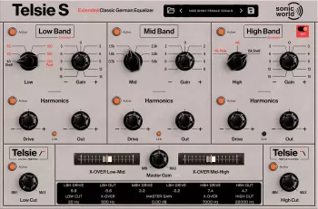 SonicWorld Telsie S 是一款基于 1970 年代著名的 Siemens (西门子) W295b 分立式甲类(Discrete Class A)均衡器的 3 频段 EQ 插件。