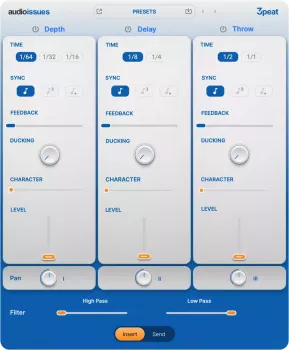 Threepeat 是一款旨在通过三个专为创造力打造的延迟引擎,帮助你创造深度、节奏和氛围的插件。无论你是需要立体声深度、有节奏的重复,还是丰富的回声,Threepeat 都能让延迟效果变得有趣、快速且富有音乐感。