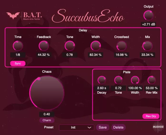 转载请注明:音频吧编曲混音资源网 » 【Mac版】Black Arts Techs SuccubusEcho v1.0.0:致敬经典的磁带回声与混响效果器