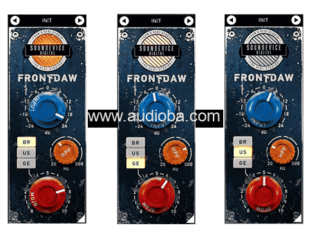 BR/US/GE buttons represent three types of analogue circuits you may choose from. BR represents classic fat British consoles, US stands for legendary punchy American style input. Switching to GE will give you velvet sounding colourful vintage German tube console.